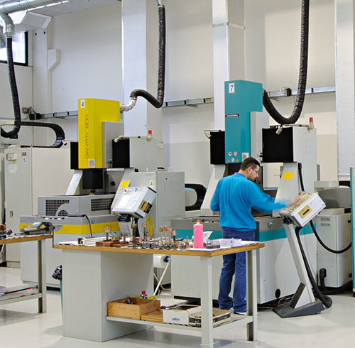 Con questo tipo di lavorazione operiamo con precisioni dimensionali al millesimo di millimetro su metalli e leghe di qualsiasi durezza riuscendo a raggiungere un alto livello di rugosità. Tali lavorazioni sono impensabili con le lavorazioni di asportazione truciolo.